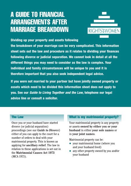 Financial Arrangements After Marriage Breakdown Rights Of Women